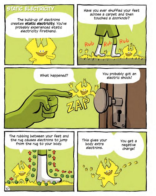 So when you reach for the doorknob millions of extra electrons leap from you to the knob or from the door knob to.